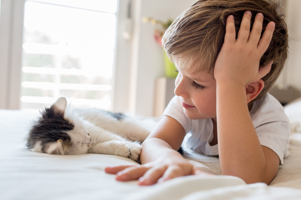 わが国ではネコ、イヌが最も注目されており、主要なアレルゲン成分として、それぞれFel d 1(ネコアレルゲン)、Can f 1(イヌアレルゲン)などのアレルゲンが報告されています。特にネコはイヌよりも短期間でアレルギー体質を獲得することが知られており、アレルギー症状も強いと考えられています。ネコアレルゲンはその大きさである分子量が非常に小さく軽いため、容易に長時間空中を浮遊します。ネコを飼育していない家庭においても、簡単に外から侵入する可能性があり、学校などを介してアレルゲンを持ち帰りやすいと考えられています。また、ネコアレルゲンは壁やカーペット(じゅうたん)、寝具(ふとん、マットレス、ベッド)、家具などに付着しやすいと言われています。