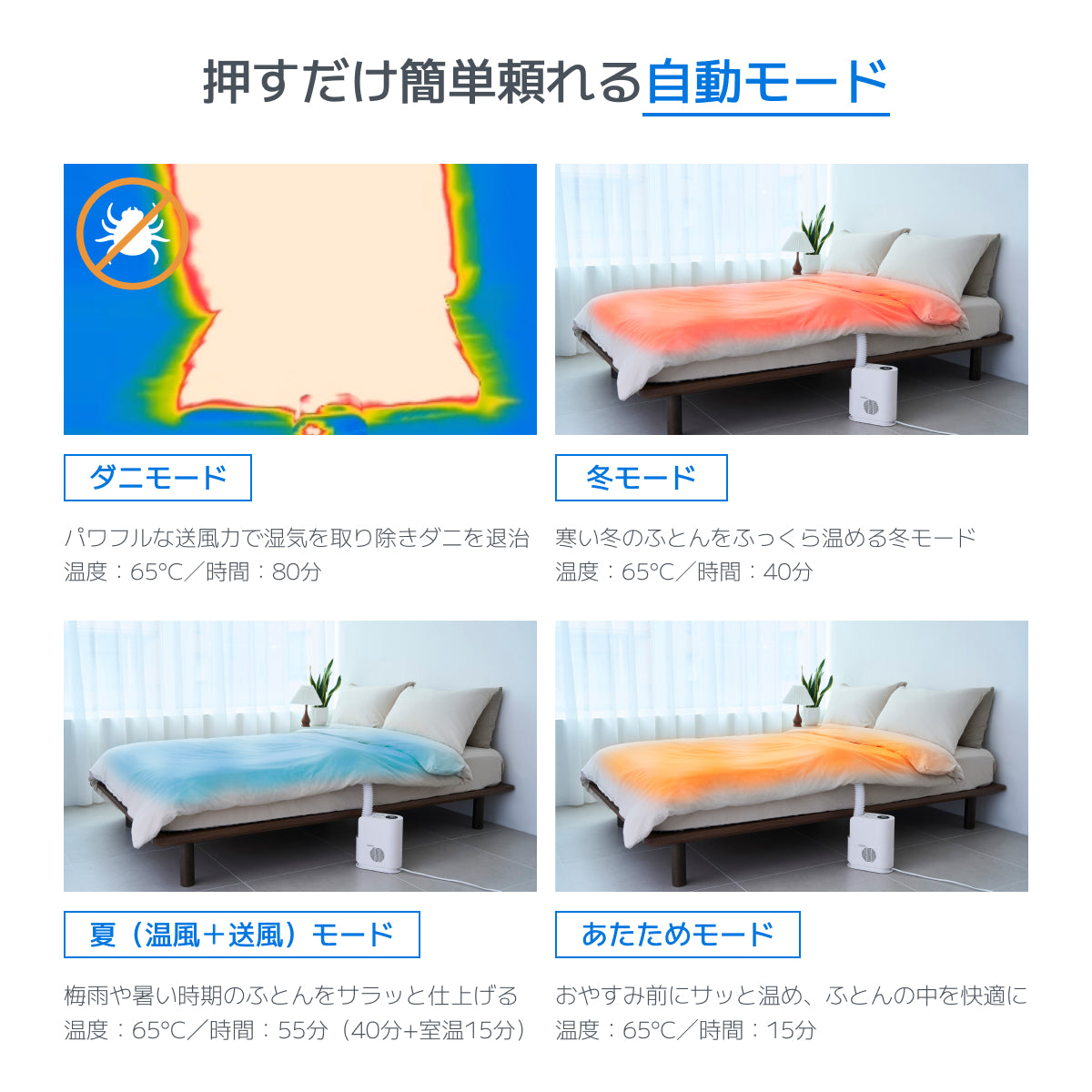 最高温度約75℃のパワフル高温風でダニを死滅。