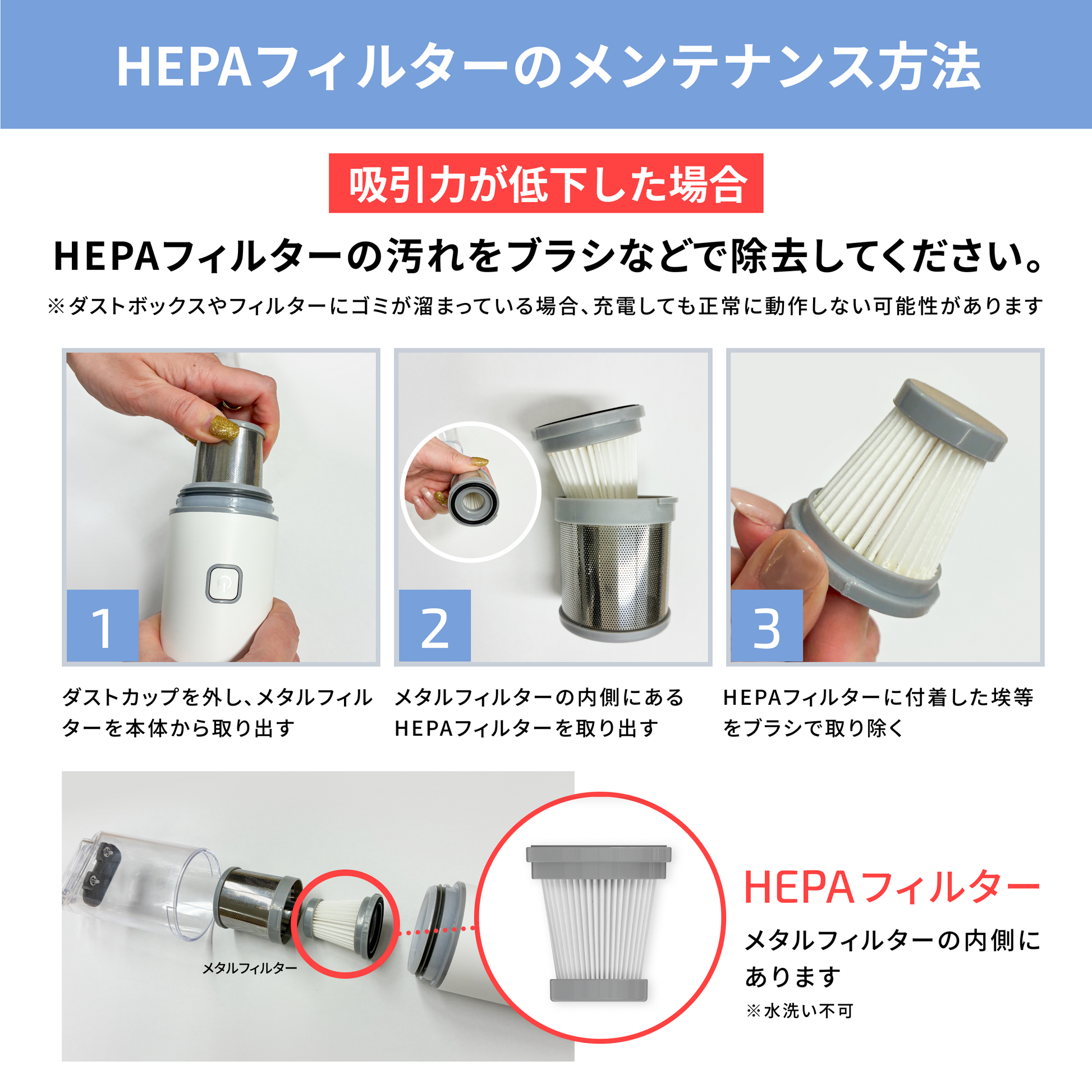 吸引力が凄く、フィルターやタンクへのホコリの溜まり方に驚きます。